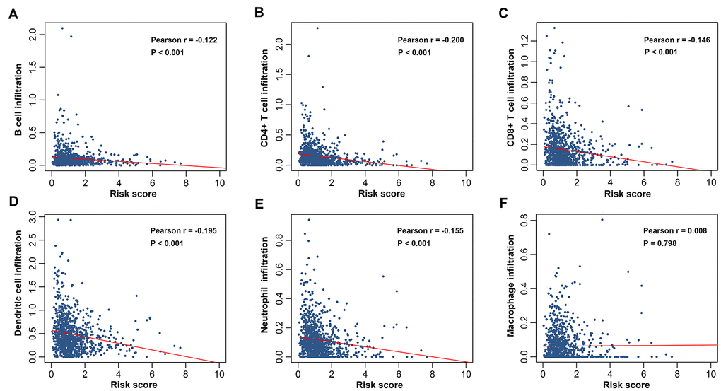 Univariate Cox regression analysis was performed using the “survival package” of R to investigate the prognostic value of differentially-expressed IRGs in breast cancer patients. Ones with P < 0.05 were considered survival-associated IRGs, which were selected for multivariate Cox regression analyses to obtain independent prognostic IRGs and construct an immunity-based prognostic model. The risk score of each patient was the sum of products of the expression value and the regression coefficient of each independent prognostic IRG,