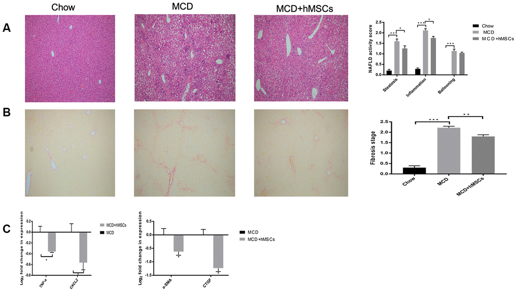 hMSCs alleviated hepatic steatosis, inflammation, and fibrosis induced by MCD diet