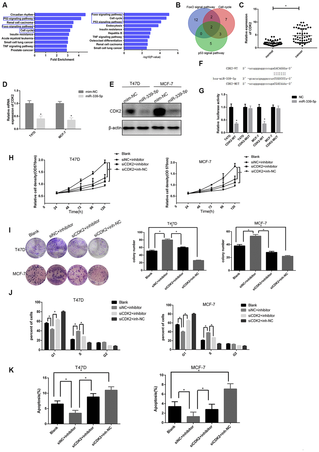 CDK2 was a functional target of miR-339-5p and inhibited by miR-339-5p