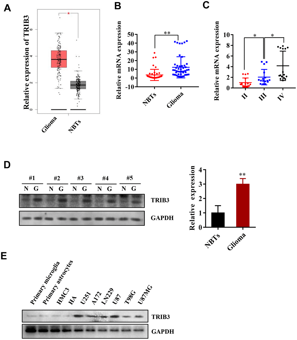 TRIB3 is upregulated in human GBM