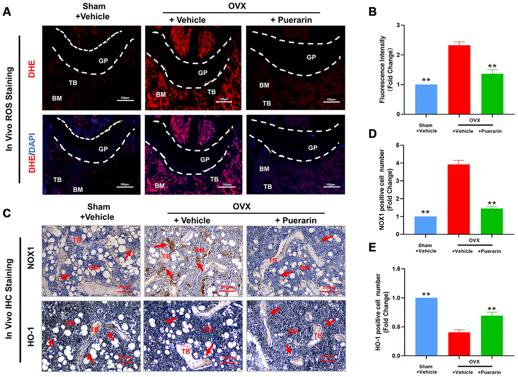 Puerarin reduces ROS levels in OVX-induced osteoporosis model mice