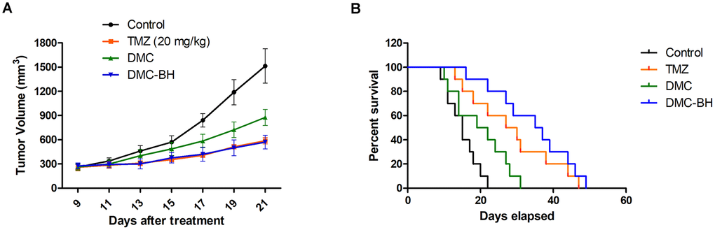 Effects of DMC-BH and DMC on glioblastoma growth in an orthotopic xenograft model