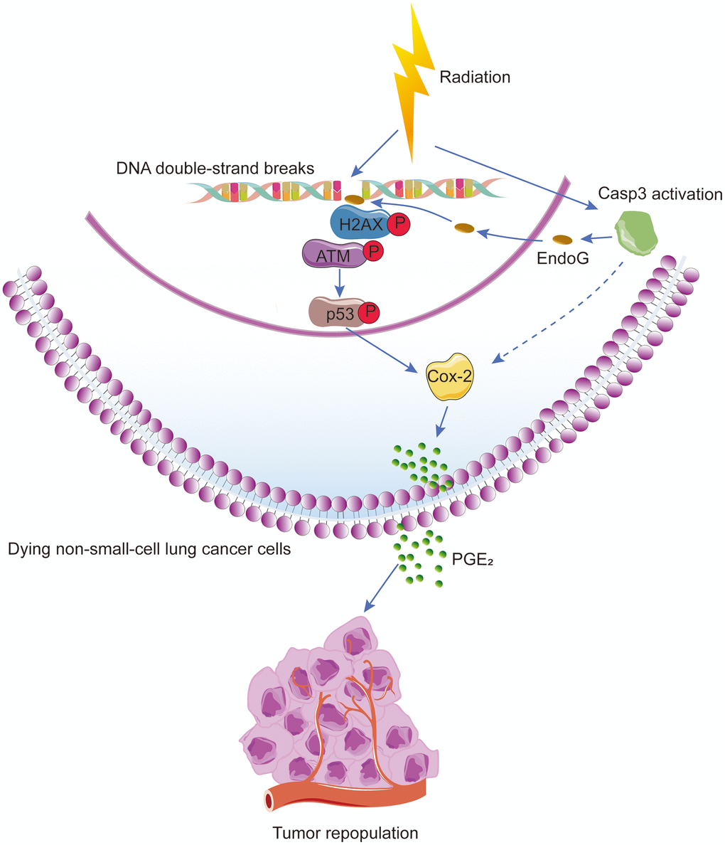 In summary, caspase-3 functions with DDR to induce tumor repopulation after radiotherapy in NSCLC, and the Cox-2/PGE2 axis controls the progression of NSCLC after radiotherapy. These molecules could provide promising therapeutic targets for NSCLC.