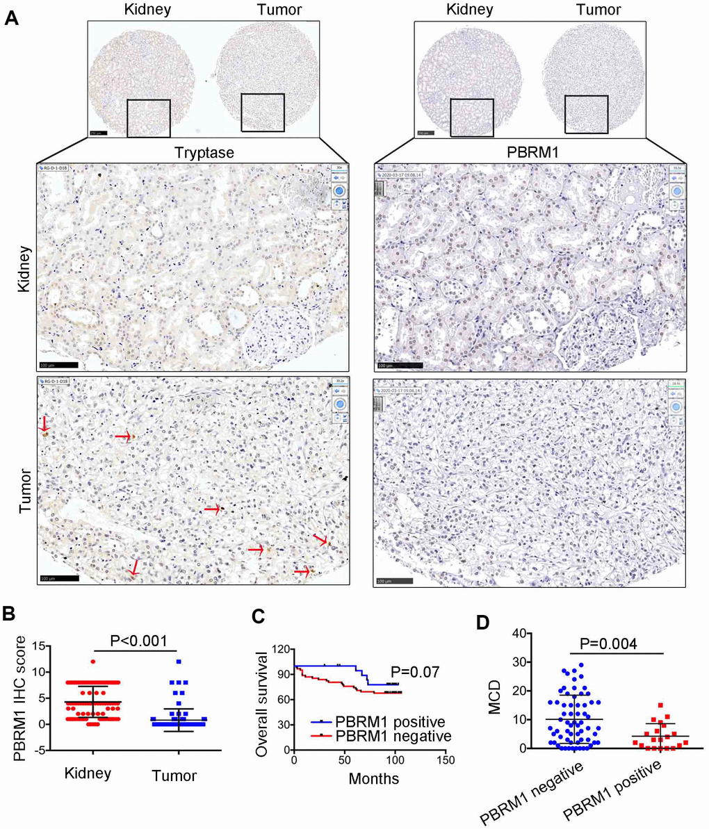 Low PBRM1 protein expression is associated with increased infiltration of mast cells