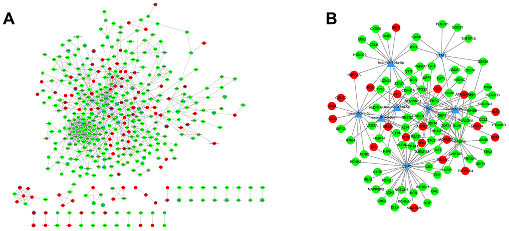Moreover, the significant modules in the PPI network were mined using the MCODE tool [51] with a screening score > 10. For the intriguing DEGs, we performed microRNA and transcription factor (TF) predictions by using Enrichr tools [52]. The corresponding miRNA-gene pairs and TF-gene pairs were also identified from the miRTarBase and ENCODE databases [53]. Finally, we integrated these miRNAs, TFs, and candidate genes to construct a systemic regulatory network.