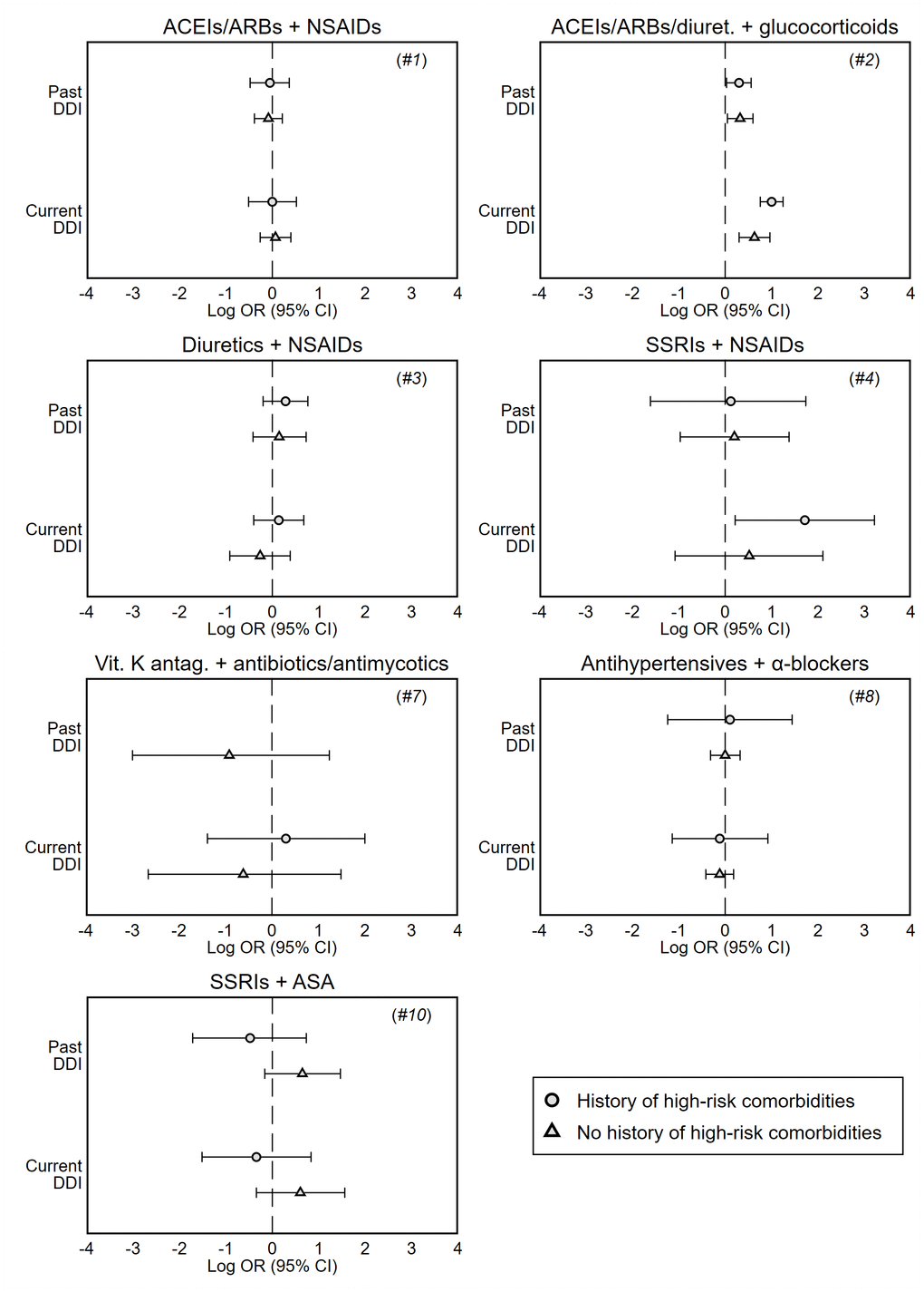 Table 4. Odds ratios of hospitalization associated with current (last month) and past (≥2 months before) exposure to DDI, stratified by history of high-risk comorbidities in the previous 3 years (see Supplementary Table 3).
