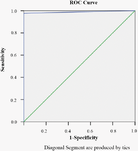 For 16 samples from COVID-19 patients, the results of SARS-CoV-2 virus detection with qPCR and ddPCR were not in agreement (Supplementary Table 1). After sample grouping, a receiver operating characteristic (ROC) curve was constructed for ddPCR (Figure 1). The area under the curve (AUC) was 0.988 (P<0.001), which indicates that the accuracy of ddPCR is very high. After selecting the point corresponding to the maximum value of the Youden index (Sensitivity value + Specificity -1) as the ddPCR cutoff value (0.04 copies/μL), the sensitivity was 97.6%, and the specificity was 100%, indicating moderate sensitivity and high specificity for SARS-CoV-2.