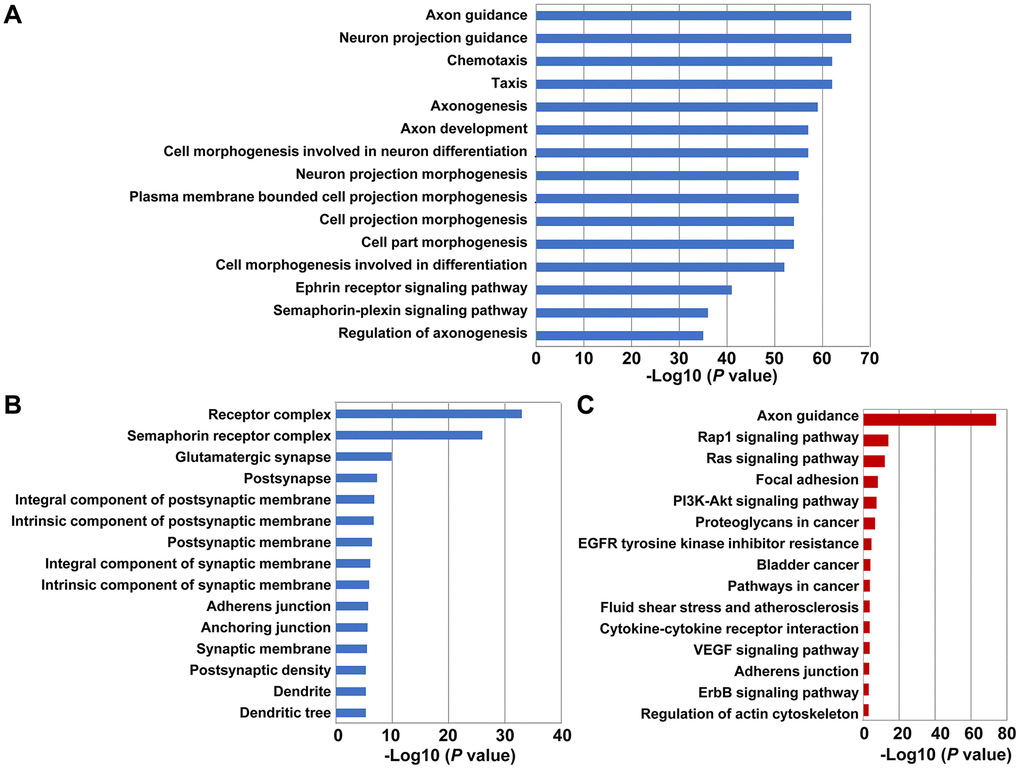 The enriched GO terms for biological processes and cellular components [41], and the KEGG pathways [42] were analyzed for SEMA4C and 50 SEMA4C-associated genes using the Metascape platform (https://metascape.org/), which integrates multiple annotation datasets [43].
