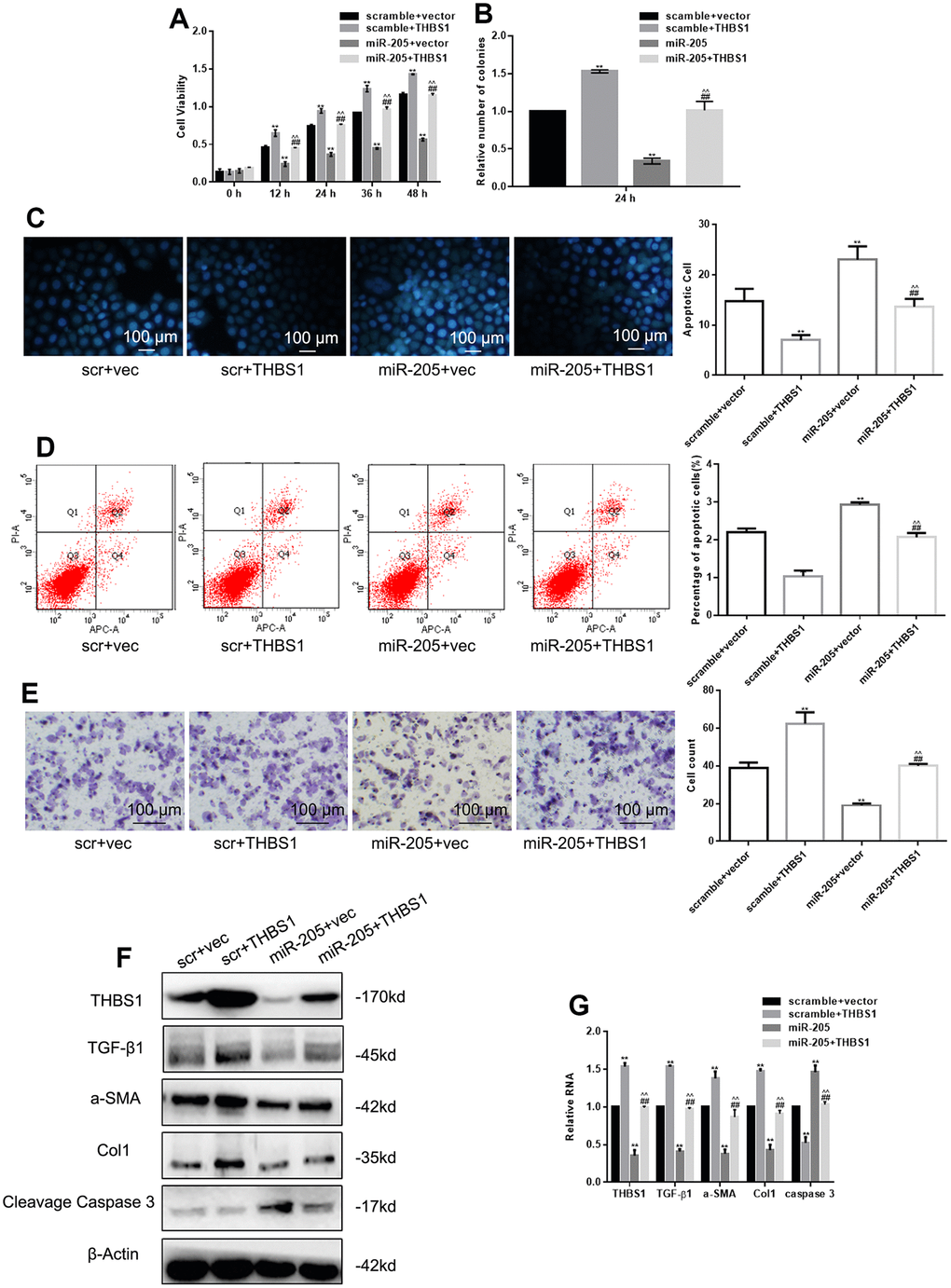miR-205 restores the effect of THBS1 overexpression on cells