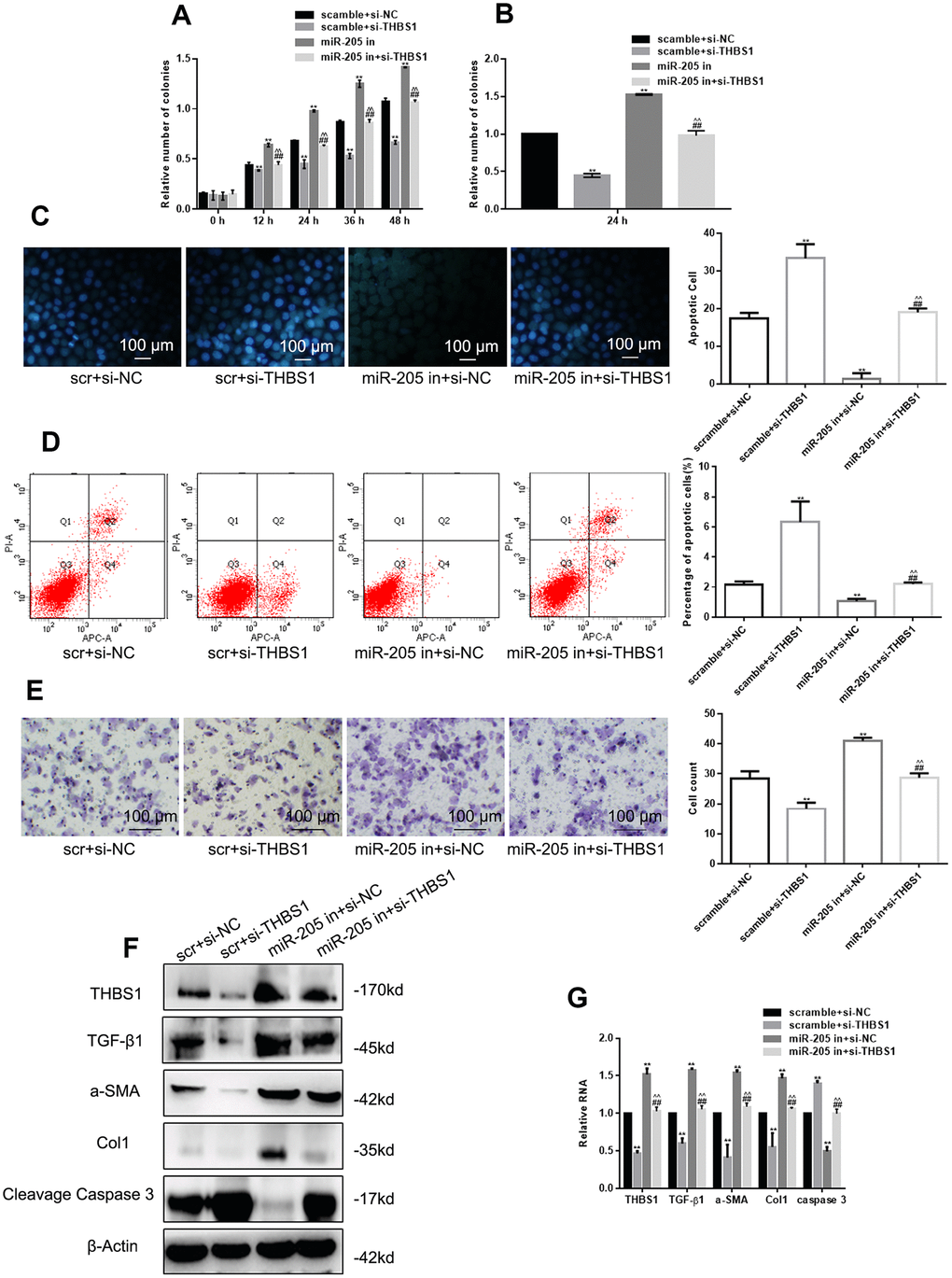 miR-205 inhibitor restores the effect of si-THBS1 overexpression on cells