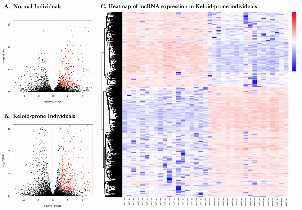Table 3. Differentially expressed lncRNAs in keloid-prone individuals 6 weeks after injury. p<0.05 indicates a statistically significant difference.
