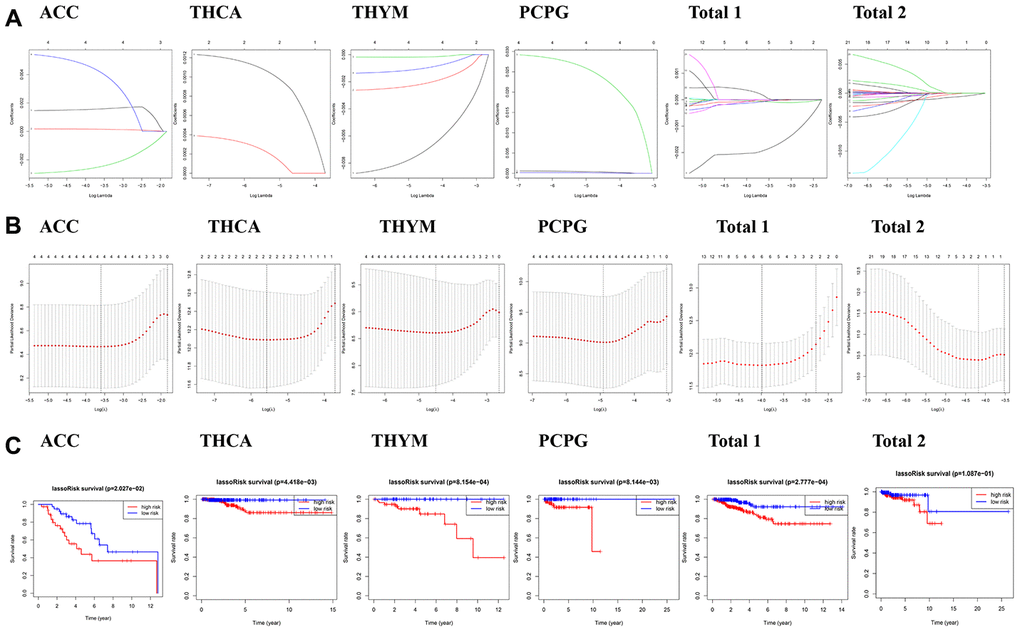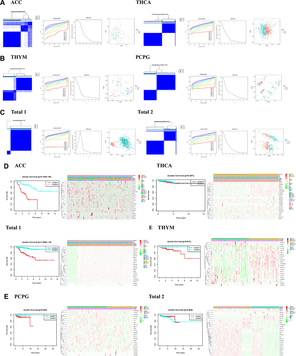 | Note: ACC, Adrenal cortical carcinoma; PCPG, Pheochromocytoma and Paraganglioma; THCA, Thyroid carcinoma; THYM, Thymoma; Total 1, Adrenal cortical carcinoma and Thyroid carcinoma; Total 2, Pheochromocytoma and Paraganglioma and Thymoma. | |||||||||||||||||||||||||||||||||||||||||||||||||||||||||||||||||||||||||||||||||||||||||||||||||||