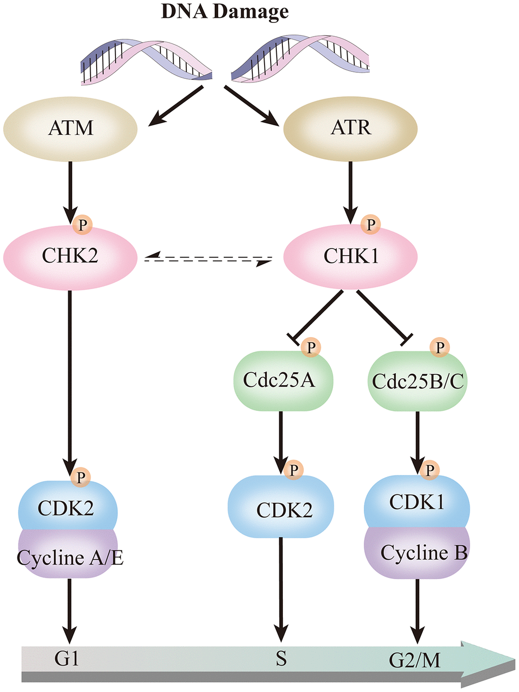 - 25. Smith J, Tho LM, Xu N, Gillespie DA. The ATM-Chk2 and ATR-Chk1 pathways in DNA damage signaling and cancer. Adv Cancer Res. 2010; 108:73–112. https://doi.org/10.1016/B978-0-12-380888-2.00003-0 [PubMed]