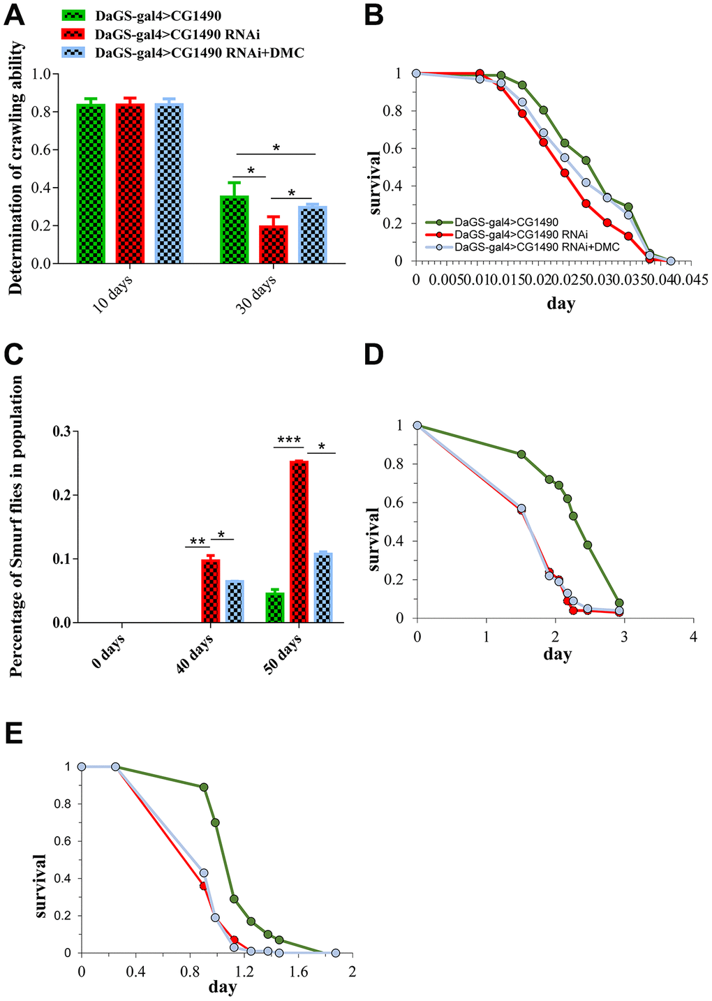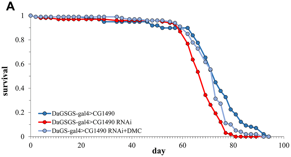 DMC extends the lifespan of dusp7-knockdown drosophila