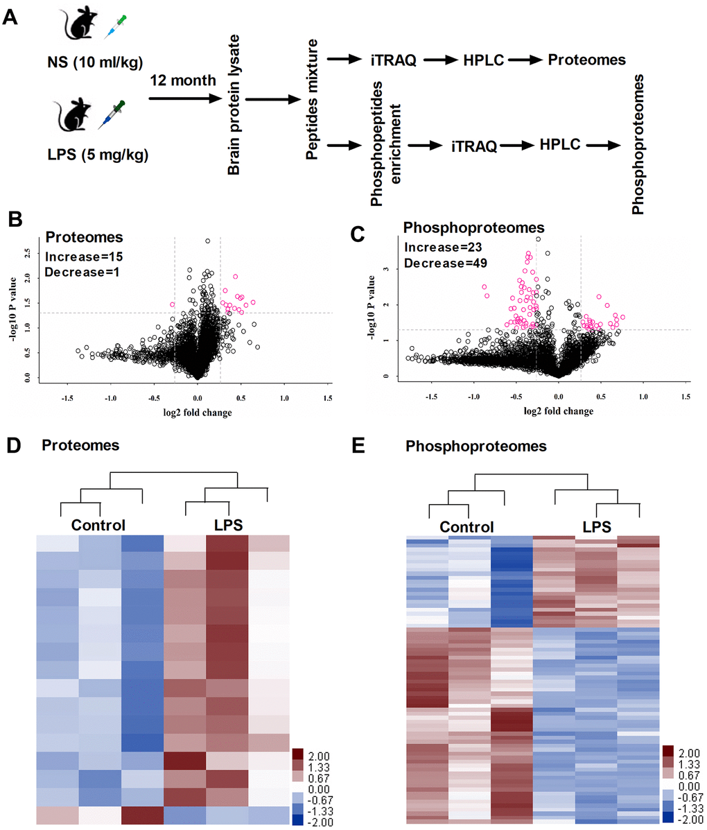 Table 2. Differential phosphoproteomics in hippocampus by iTRAQ analysis from control and LPS mice.