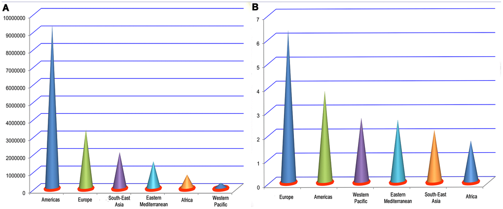 COVID-19 is a serious global public-health concern that has had a startling medical, economic, educational, political, and cultural impact in a number of countries [1–4]. As of 10:00 am Central European Summer Time, 1 August 2020, there have been 17,396,943 confirmed cases of COVID-19, including 675,060 deaths, reported to the WHO (https://covid19.who.int/) [5]. Among them, the Americas, Europe, South-East Asia, Eastern Mediterranean, Africa, and Western Pacific have reported 9,320,330, 3,357,465, 2,072,194, 1,544,994, 788,448, and 312,771 cases, respectively (Figure 1A) [5]. The overall worldwide crude death rate among infected persons is about 3.88%, of which the crude death rates in Europe, Americas, Western Pacific, Eastern Mediterranean, South-East Asia, and Africa are about 6.34%, 3.81%, 2.68%, 2.6%, 2.17%, and 1.72%, respectively (Figure 1B) [5]. With the rapid increase in the number of COVID-19 patients, those with a history of cerebrovascular disease have gradually attracted the attention of clinicians and pathologists. Meta-analyses by Aggarwal et al. [6] and Wang et al. [7] showed that underlying cerebrovascular disease is related to increased disease severity in COVID-19 patients. It is therefore important to identify a history of cerebrovascular disease in COVID-19 patients, which will help to predict their prognosis and support more effective allocation of limited medical resources. Many studies have reported the incidences of cerebrovascular disease as a comorbidity in patients with COVID-19 [8–54]. However, there are moderate differences among these studies. In addition, some are single-center studies and have an insufficient sample size, low population representativeness, and limited universality of conclusions. For those reasons, this meta-analysis was performed to estimate the incidence of a history of cerebrovascular disease among patients with COVID-19.