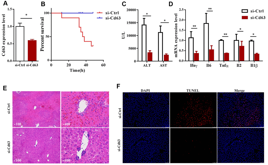 Cd63 silencing ameliorates ConA-induced hepatic injury in mice