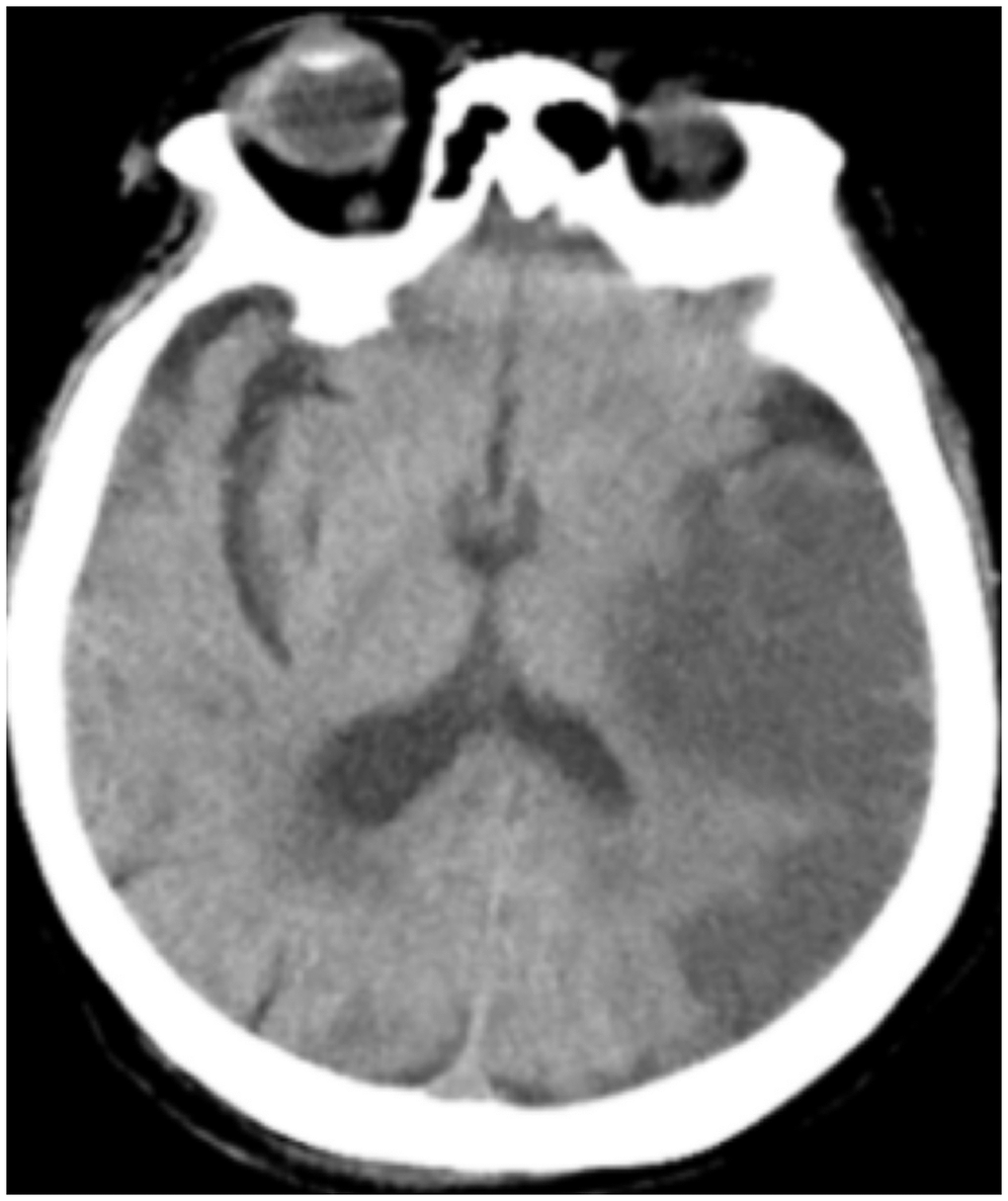 Based on the WHO criteria, stroke was defined as “rapidly developing clinical signs of focal (or global) disturbance of cerebral function, lasting more than 24 hours or leading to death, with no apparent cause other than that of vascular origin [18]. Because our medical institution was a designated hospital for treating the patients with COVID-19 during the pandemic, only plain CT scan was used for the imaging examination of the nervous system. Two neurologists and two neurosurgeons judged the stroke based on clinical manifestations and imaging studies: all patients had new neurological dysfunction after diagnosis of COVID-19, and abnormal intracranial changes were observed by CT examination, and the new neurological symptoms can be explained.
