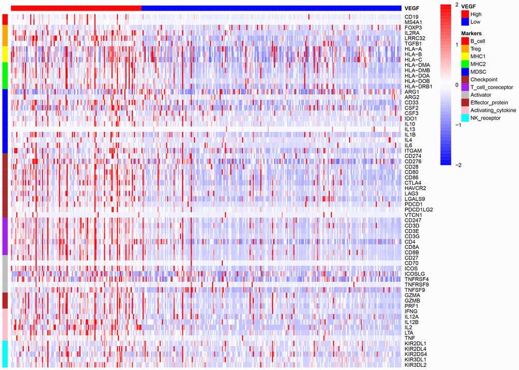 Immune cell infiltration patterns associated with VEGF score subtypes
