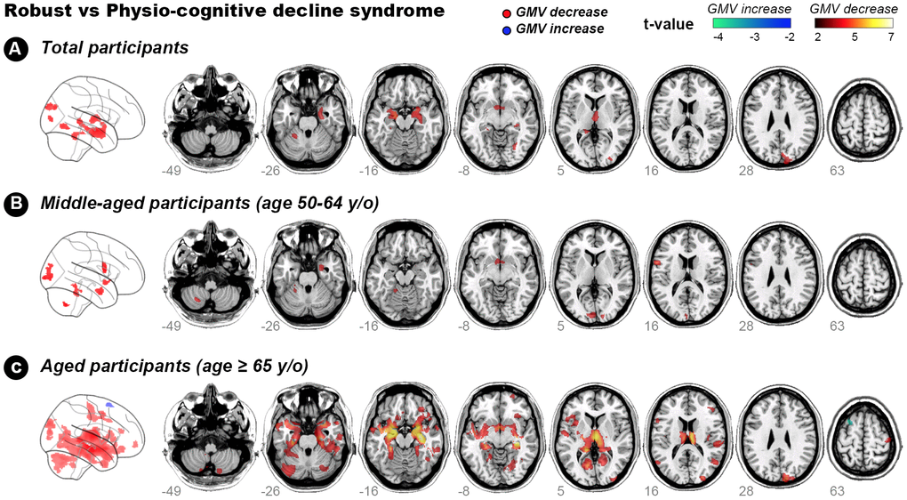 Table 4. Reduced gray-matter volume in physio-cognitive decline syndrome subjects of two aged groups.
