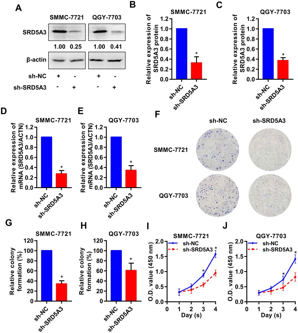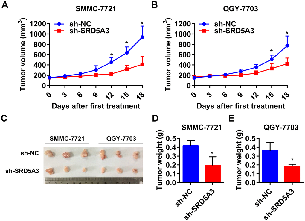 Knockdown of SRD5A3 suppresses the growth of HCC in vitro and in vivo