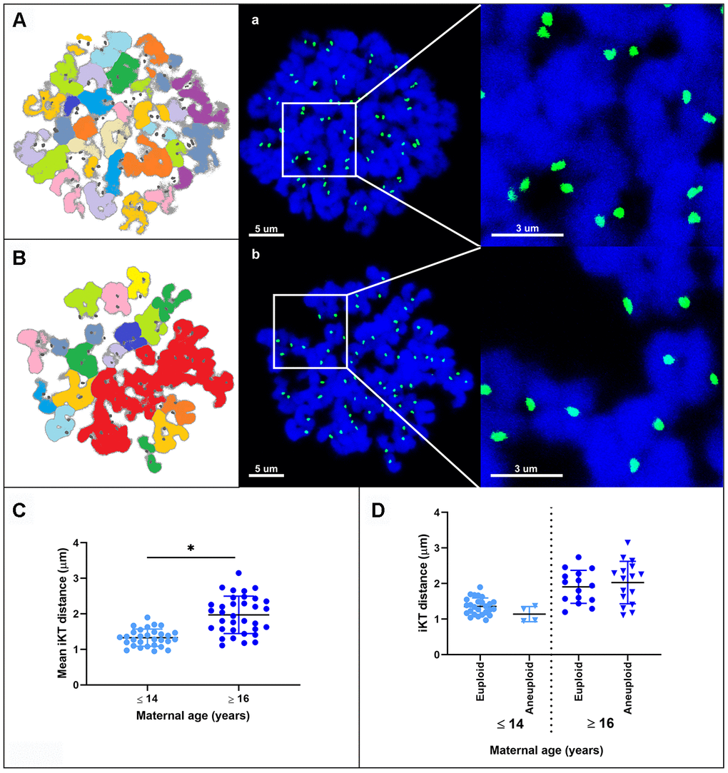 All statistical analysis was performed using GraphPad Prism 8.0 software (GraphPad Software, San Diego, California, USA). Normality was analyzed using the D’Agostino-Pearson and Shapiro-Wilk normality tests. Comparison of the interkinetochore distance between groups was performed using an unpaired T-test. Dichotomous data, such as the percentage of aneuploid oocytes, was analyzed using Fisher’s exact test.