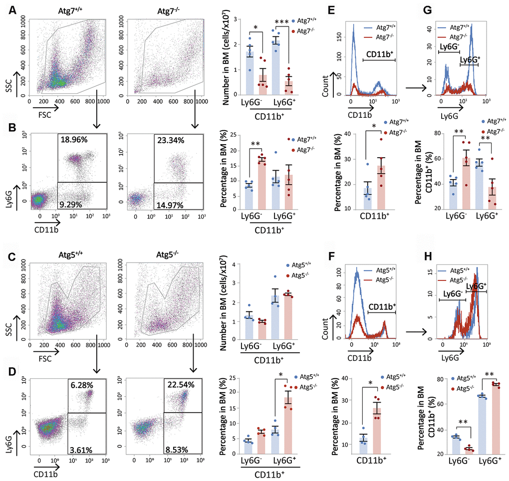 Atg7 deletion diminishes the cellularity of bone marrow CD11b+ myeloid cells