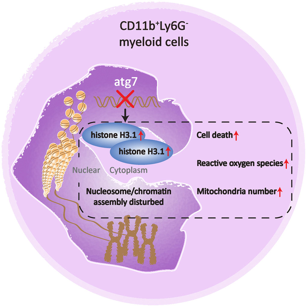 Atg7-deletion causes abnormal nucleosome assembly of the bone marrow CD11b+Ly6G- myeloid cells