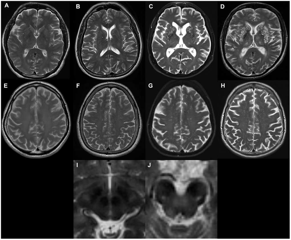 EPVS were defined as fluid-filled spaces with a signal intensity similar to CSF on all sequences, which followed the course of penetrating vessels, and were linear, round, or ovoid in shape. Following the STandards for ReportIng Vascular changes on nEuroimaging (STRIVE) [1], two trained neurologists (L.Y.G. and J.T. with 2-years and 9-years of experience, respectively), who were blinded to subject’s clinical information, manually counted the numbers of EPVS independently. According to well-established PVS rating criteria [43], EPVS were rated using a 4-point visual rating scale on axial-T2 weighted images (0: no EPVS; 1: <10 EPVS; 2: 11–20 EPVS; 3: 21–40 EPVS; and 4: >40 EPVS) for the CSO and BG. Midbrain EPVS were rated in a binary fashion (0 for no EPVS, 1 for EPVS visible). EPVS rating was carried out on the slice with the highest number of EPVS after all the relevant slices for each anatomic area were scanned. Both hemispheres were counted, and the hemisphere with the higher score was used if there was asymmetry between the sides [43]. 'Representative figures of EPVS rating are demonstrated in Figure 3. As a limited number of patients had EPVS scores of 0 or 4, CSO-EPVS scores were further categorized into low-grade (score ≤ 2) and high-grade (score ≥ 3) and BG-EPVS scores were categorized into low-grade (score ≤ 1) and high-grade (score ≥ 2) for illustrative purposes. These categorizations are demonstrated in the figures; however, statistical analysis was carried out using the original values. Discrepancies were solved by consensus. T2-weighted images acquired at baseline were preferentially rated. In a few cases when images were not acquired at baseline, images acquired at follow-up visits were rated. The inter-rater Cohen’s kappa scores were 0.63, 0.75, and 0.96 for the CSO, the BG and the midbrain EPVS scores, respectively. Major causes of discrepancies in EPVS scores included EPVS numbers at borderline, and vague lines.