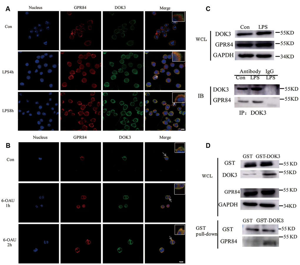 Incubation of microglia with LPS or GPR84 agonist induces a physical association between DOK3 and GPR84