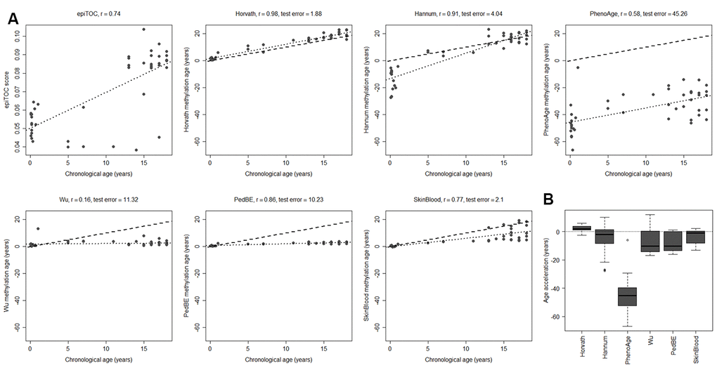 - 29. Wu X, Chen W, Lin F, Huang Q, Zhong J, Gao H, Song Y, Liang H. DNA methylation profile is a quantitative measure of biological aging in children. Aging (Albany NY). 2019; 11:10031–51. https://doi.org/10.18632/aging.102399 [PubMed]