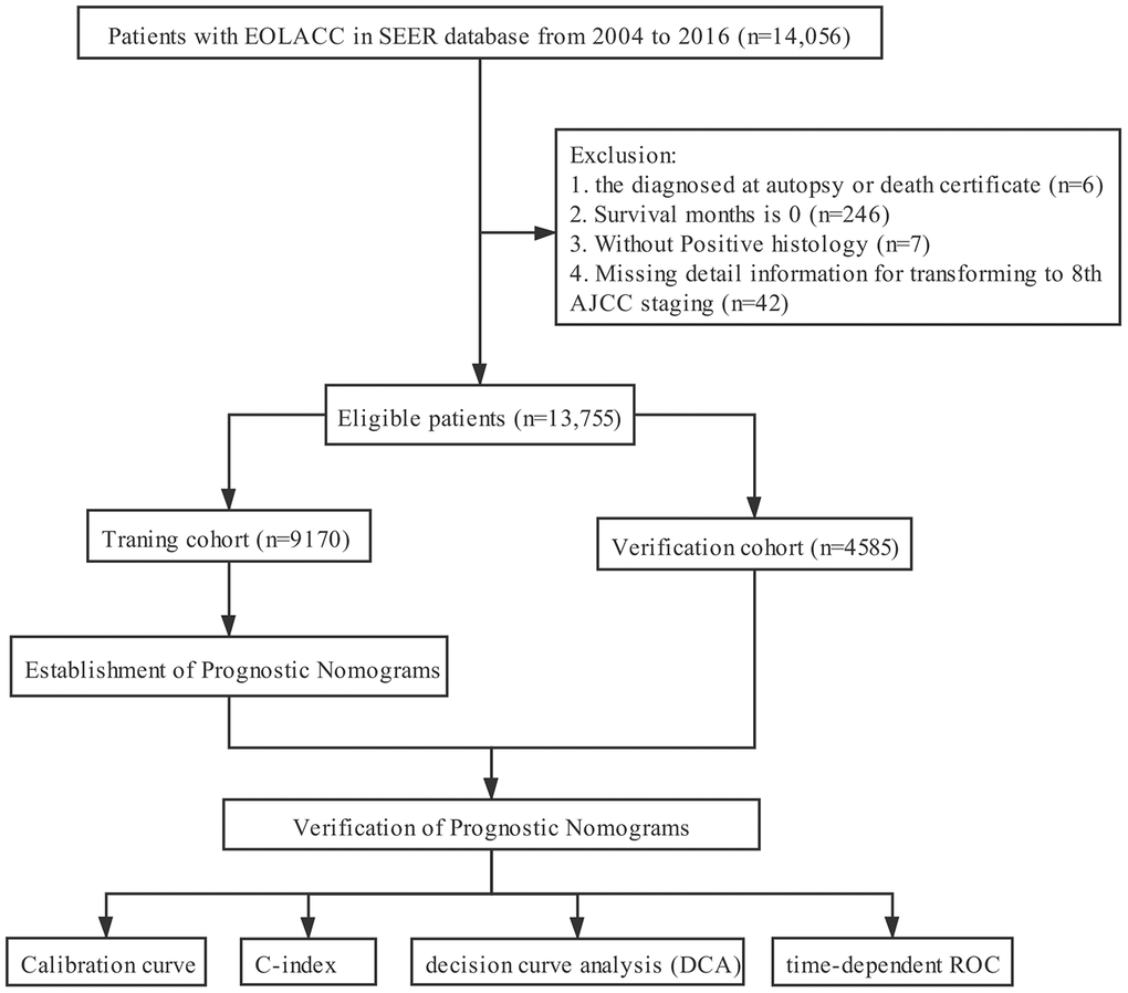 In conclusion, we established and validated nomograms for predicting OS and CSS based on a national cohort of almost 13,000 patients with EOLACC. The nomograms could effectively solve the survival paradox of the AJCC staging system and be an excellent tool to integrate clinical characteristics to guide the therapeutic choice for EOLACC patients.