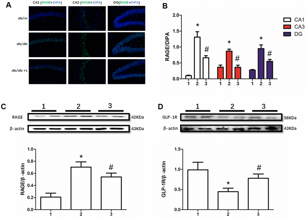 Increased RAGE and decreased GLP-1R in hippocampus were restored by liraglutide