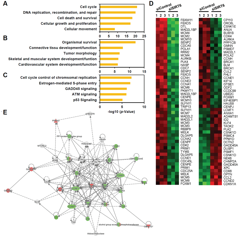 Genes associated with cellular growth and proliferation as top-affected genes by SIRT6 knockdown