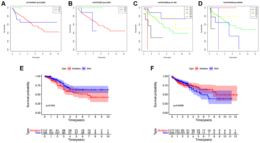 Based on the gene mutational landscape in colon cancer, we found that KRAS mutations ranked in the top five of mutated genes in the TCGA and ICGC databases. KRAS is a member of the RAS family, which are G-proteins involved in intracellular signaling [31]. The contribution of RAS to anti-apoptosis, proliferation, and metastasis ability of cancer cells has been well validated [32, 33]. These activities were achieved via activation of several downstream effector pathways such as canonical PI3K-AKT-mTOR and RAF-MEK-ERK kinase cascades [34]. Numerous studies indicated that KRAS mutations serve as prognostic and predictive biomarkers in multiple types of cancer, as it can provide information for patients’ survival outcomes and suggestions on the use of EGFR-inhibitors. Activating KRAS was one of the most frequent oncogenic mutations in early colon cancer, recorded in 27–43% of patients [35]. Ablation of the KRAS mutation in colon cells can lead to tumor regression in mice, suggesting its importance in colon carcinogenesis [36]. In our study, we observed that rs121913529 was the most frequent mutational locus in colon cancer samples from the TCGA database. In addition, rs121913530 and rs121913529 correlated negatively with the survival rate of colon cancer patients. As the prognostic value of rs121913530 has only been proven in breast cancer among Chinese people, further validations are needed [37]. Given the significant oncogenic function of KRAS, drugs targeting KRAS may provide a promising selection for tumor therapy.