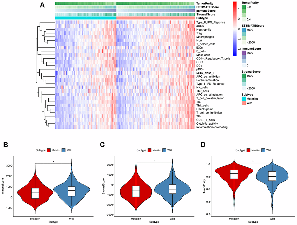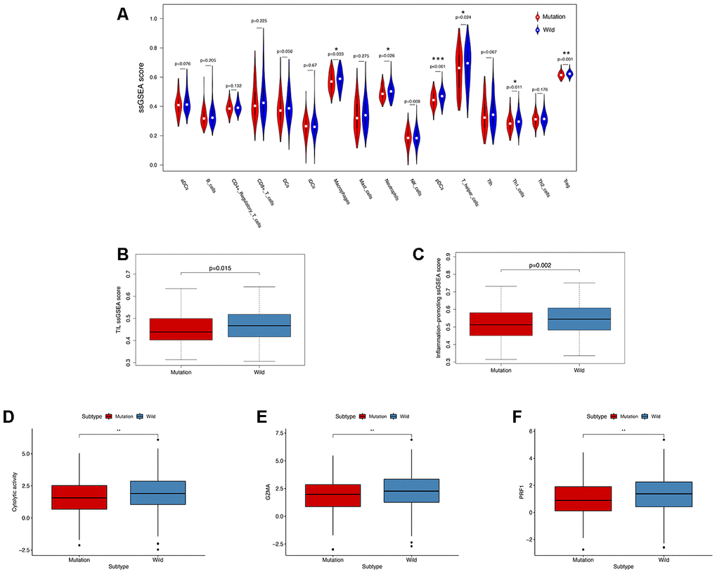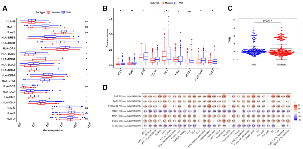 We used the Wilcoxon test to screen for gene expression differences between the KRAS-mutated and wild-type groups. We analyzed the relationship between differentially expressed genes and the immune score by calculating the Pearson correlation coefficients. The expression levels of checkpoint-related and HLA genes in the KRAS-mutated and wild-type groups were analyzed by the Mann–Whitney U test.