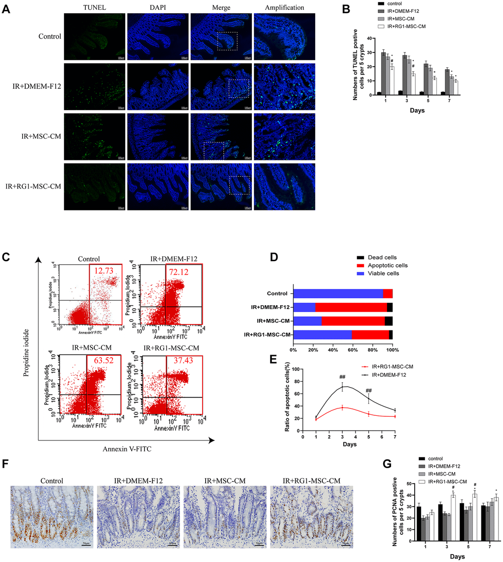 RG1-MSC-CM attenuates apoptosis and promotes proliferation in the intestine