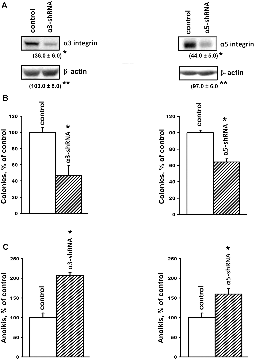 Downregulation of the expression of α3β1 and α5β1 inhibits colony formation and invasive activity of melanoma cells and reduces the resistance of the cells to anoikis