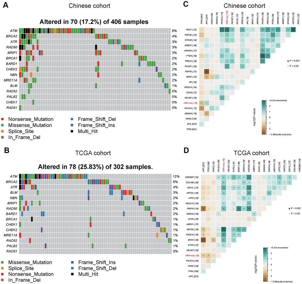 Subjects with somatic mutations in these core HR pathway genes (see “Materials and Methods”) were included in the HRR-mut group (n=70, Chinese cohort; n=78, TCGA cohort) in subsequent analyses.