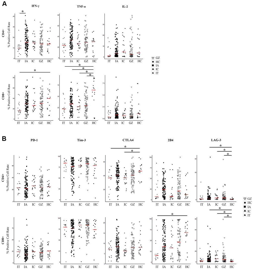 There are some limitations in out study: (1) HBV-specific T cells play a very important role in HBV infection, while the immune response against HBV was not analyzed in this study. We only detected the cytokines and inhibitory molecules of bulk CD4/8 T cells and built an ICS model as a preliminary try based on what we found so far. In future studies, more focus on HBV-specific T cells is needed. (2) Bystander activation of EBV/CMV/FLU affects host immunity and need to be tested in every patient in ideal. It is really a pity that we did not examine these viruses in the study, although none of the patients showed symptoms of EBV/CMV/FLU infection at least at the time of blood samples drawing.