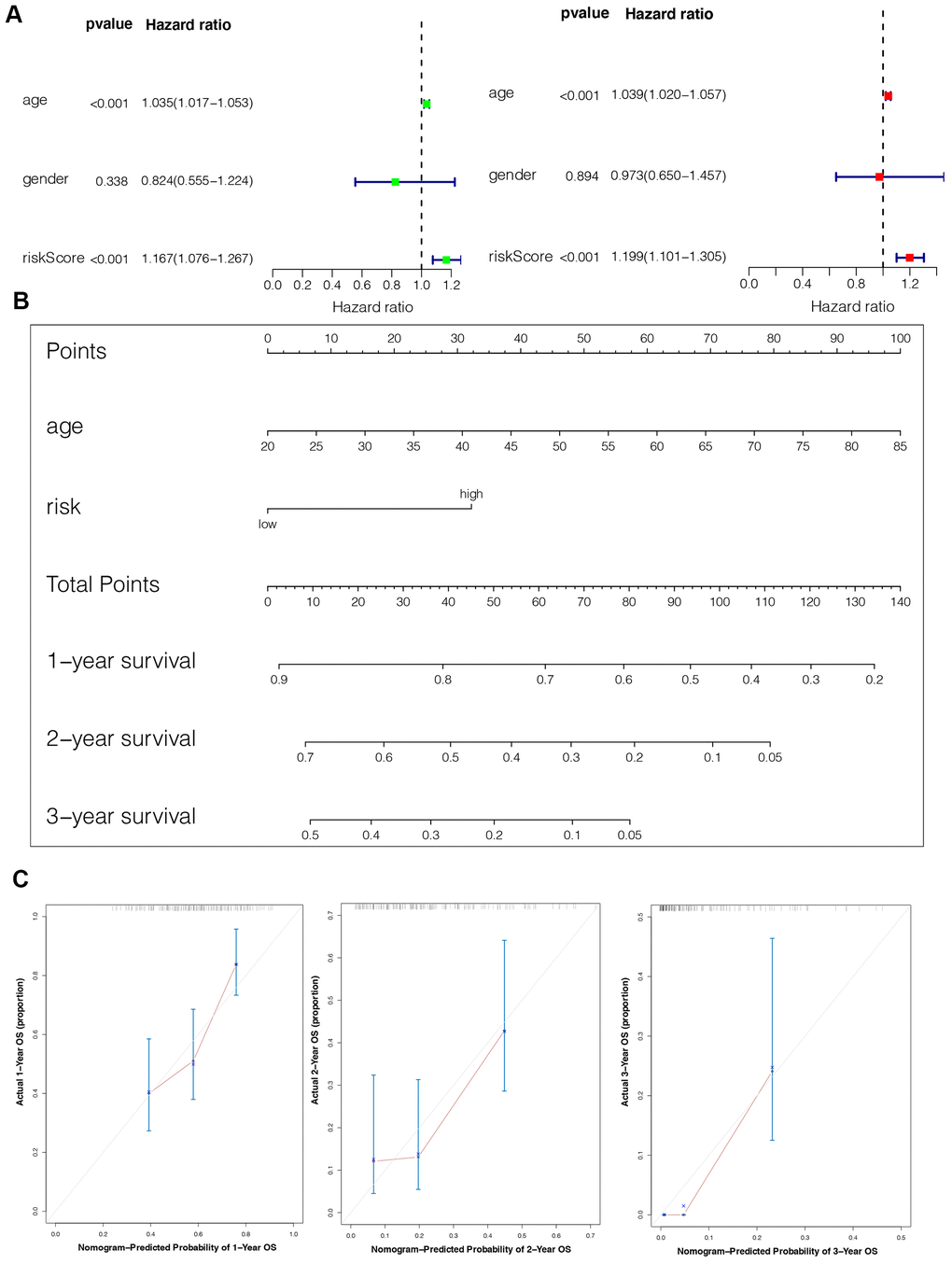 The univariate and multivariate Cox analyses were used to evaluate the independent prognostic ability of the IPS. The “rms” package was used to develop an innovative nomogram based on the results of the Cox analyses. Calibration plots of observed vs. predicted probabilities of 1-, 2-, and 3-year OS were generated to determine the accuracy. The discrimination of the model was determined using the concordance index (C-index). Bootstraps were calculated to correct the C-index [53].