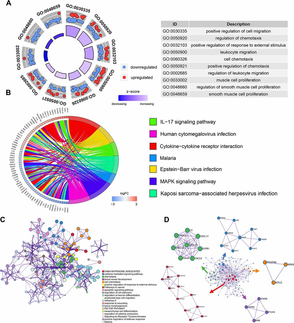 In order to explore the underlying molecular mechanisms of DEGs, GO term and KEGG pathway analysis were done using clusterProfiler R package and were visualized using “ggplot2” [52] on R. Protein-protein interaction enrichment analysis was done on Metascape (http://www.home-for-researchers.com) [53] using OmniPath8, BioGrid6 and InWeb_IM7. Closely connected network components were identified using the Molecular Complex Detection (MCODE) [54].