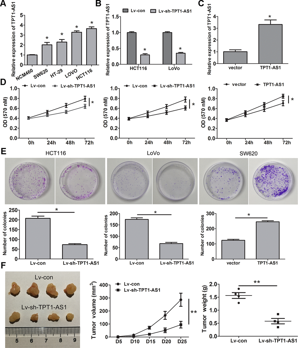 TPT1-AS1 promotes CRC cell proliferation, migration and invasion in vitro and in vivo