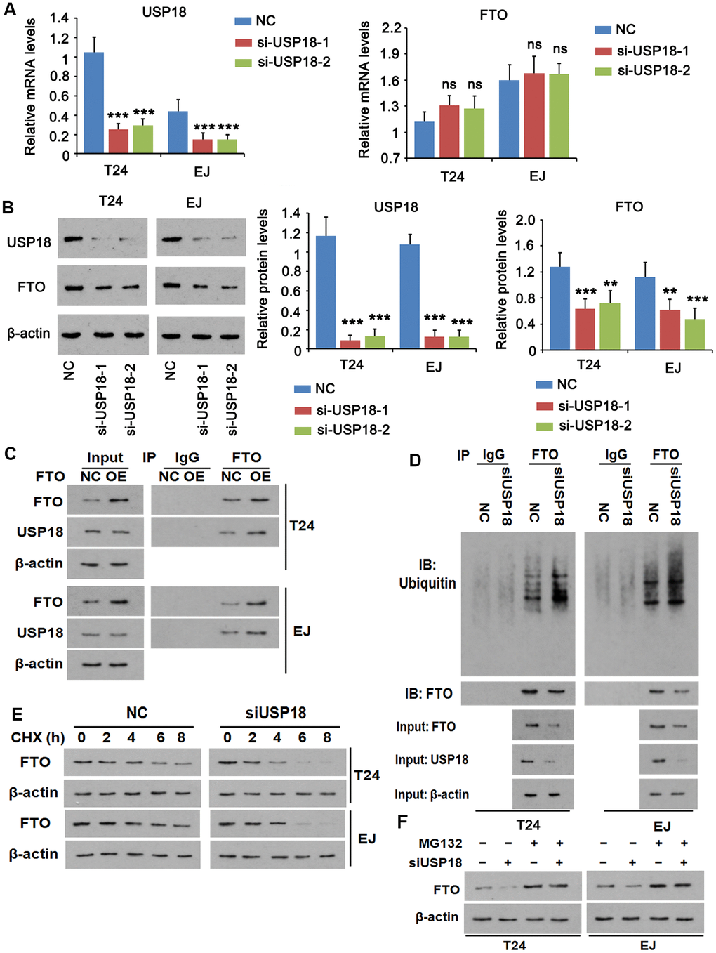USP-18 promotes FTO protein stability by inhibiting proteasomal degradation