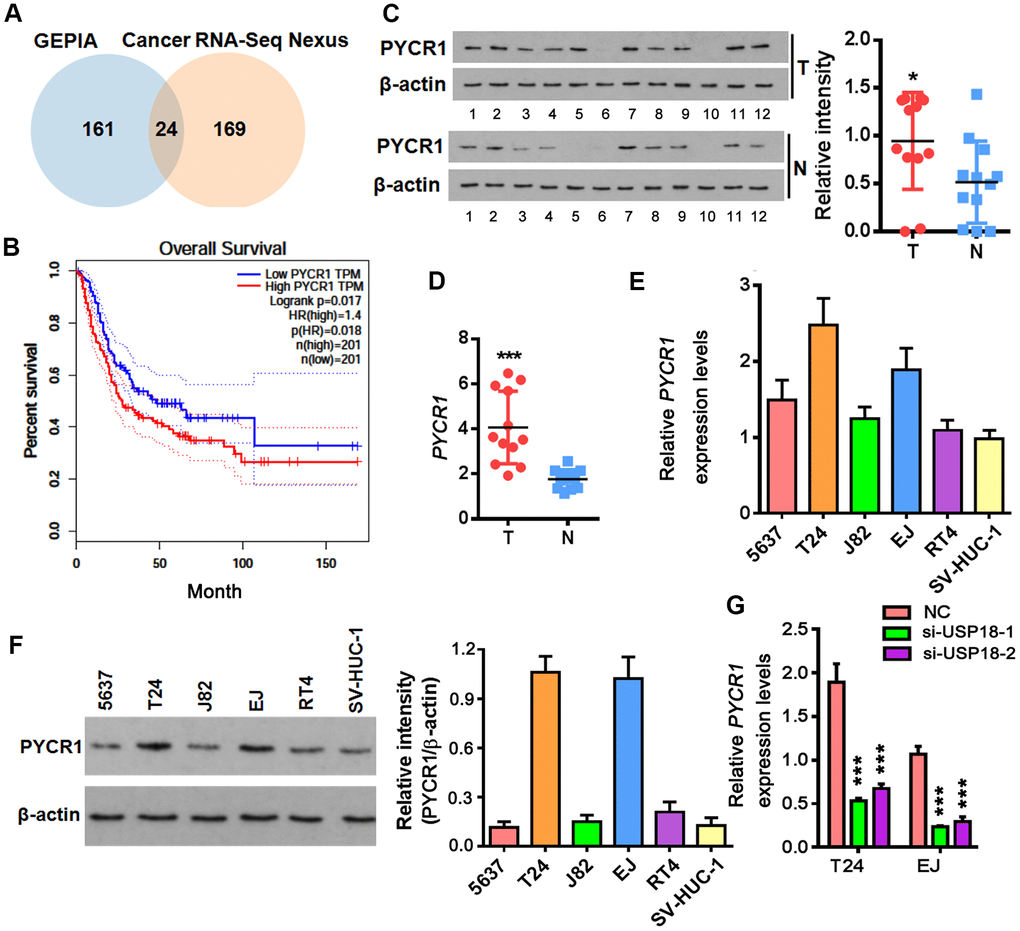 Table 1. Expression of PYCR1 at different stages of BLCA.
