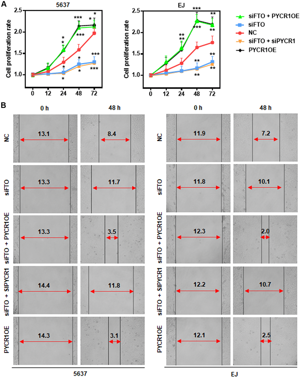 PYCR1 restores FTO-depleted BLCA cell proliferation and migration in vitro