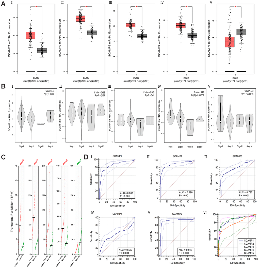 Differential expression and diagnosis model of SCAMPs mRNA between PAAD and normal samples