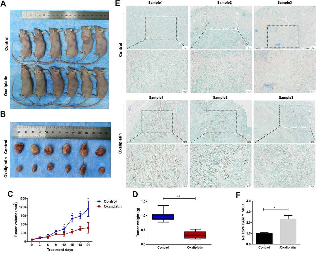 Oxaliplatin inhibited tumor growth of OSCC and caused upregulation of PARP1 in vivo