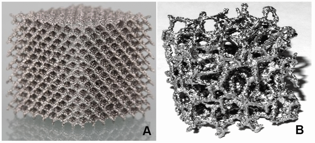 The porous coating design is the most commonly used artificial shoulder prosthesis in clinical practice. Although other coating materials could improve the bone-prosthesis healing to a certain extent, there are still problems that could prevent achieving the true purpose of bone in-growth, such as the sheer force of the material interface, a low porosity, and the galvanic effect [2]. Therefore, it was of great necessity to design and develop a prosthesis with a three-dimensional spatial structure to improve the bone-prosthesis healing condition and improve the biomechanical fixed strength. A new implant metal material, titanium alloy with a classic pore structure, made by electron beam melting technology using titanium alloy as raw material could replace previous implant materials. Previous studies confirmed that the screw with classic pore structure, formed by the regular arrangement and divergence of regular hexahedron mesh into surrounding space, had considerable bone in-growth characteristics [1]. Our study showed that the trabecular spatial structure implant, which was similar to the structure of cancellous bone, had the analogical bone in-growth potency of the hexahedral structure implant, with faster bone in-growth speed and a larger area early post-operation (within six weeks). This finding also provided a theoretical basis for the selection of endophytes with different pore structures in clinical treatments.