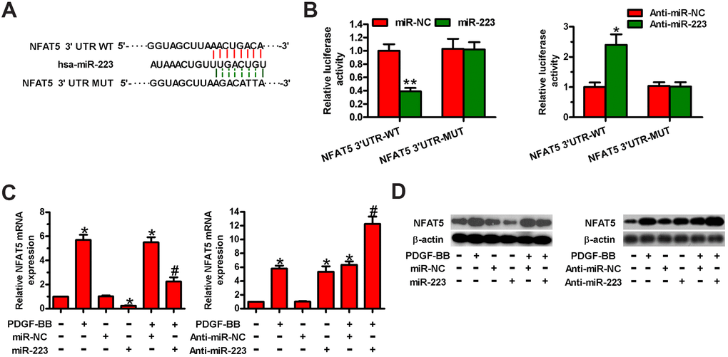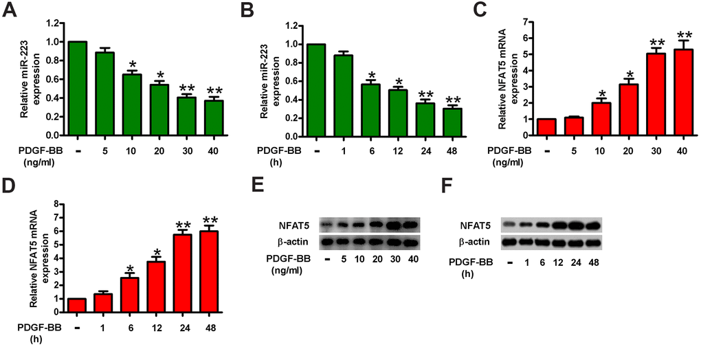 MiR-223 and NFAT5 are differentially expressed in PDGF-BB-stimulated HASMCs